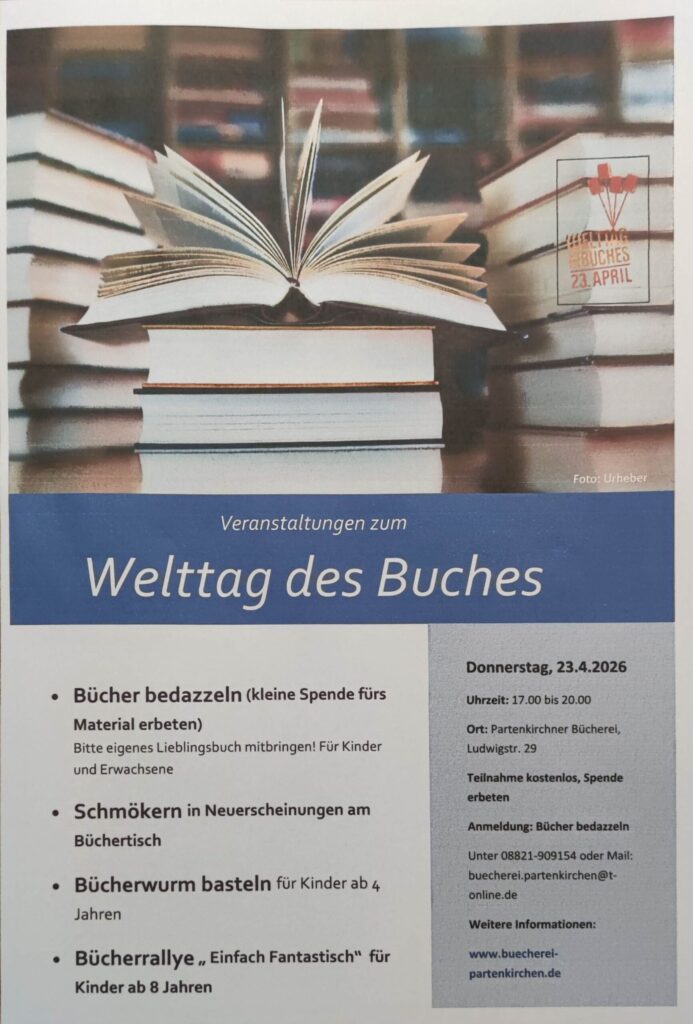 Am Donnerstag, 23. April 2026, ist Welttag des Buches. Wir laden Sie herzlich ein an unseren Veranstaltungen teilzunehmen: